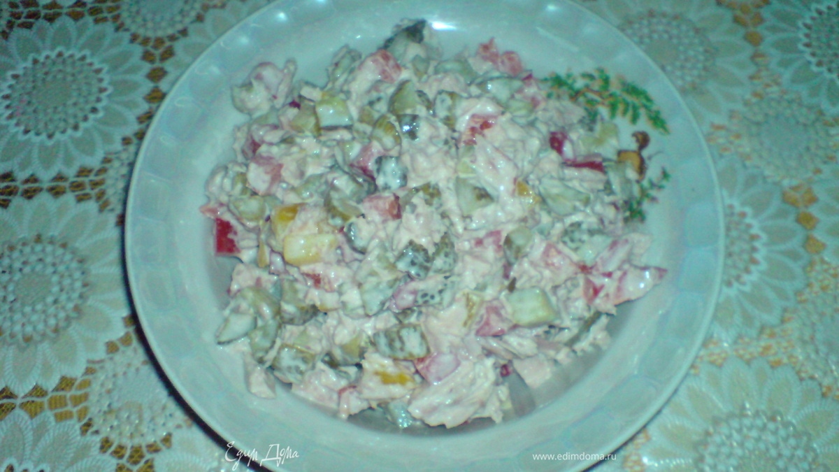 - Шаг 3По желанию добавить в салат мелко рубленный репчатый лук.