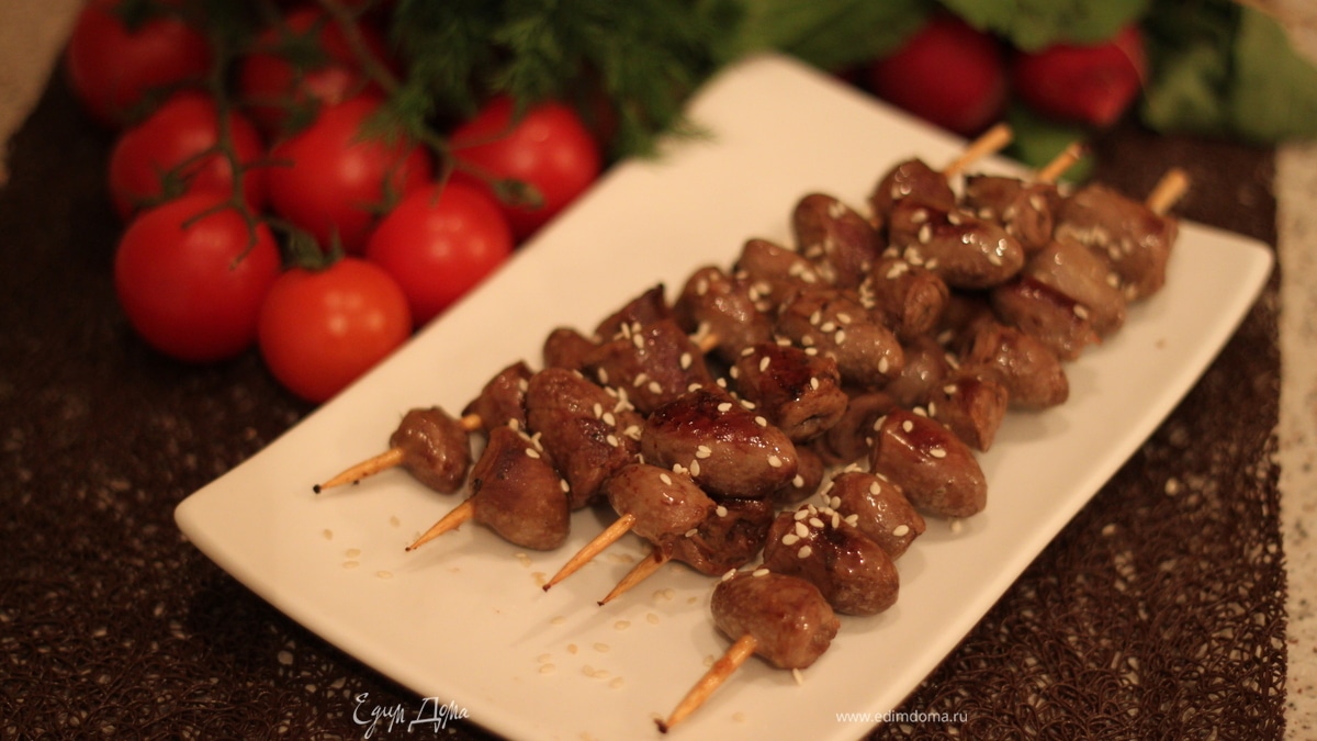 Куриные сердечки на шпажках