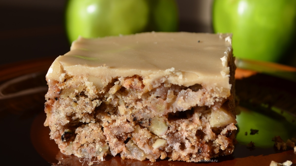 Старомодный яблочный кекс с коричневой глазурью