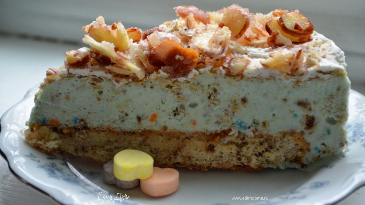 Замечательный торт, который пекла на ДР старшего сына. Бисквит получается интересный и сочетается отлично с мороженым. По рецепту форма предлагается минимальная по диаметру 15 см. и торт получается высоким за счет мини размера формы. Я пошла своим путем, сделала на форму в 23 см и торт стал по размеру не высоким, но зато хватило всем ))) или можно увеличить кол-во продуктов для бисквита вдвое))) если печь в полном объеме