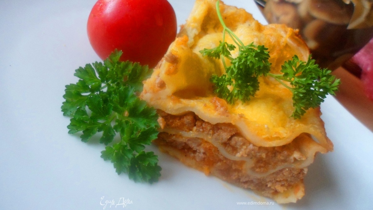 Лазанья с мясным фаршем и овощами