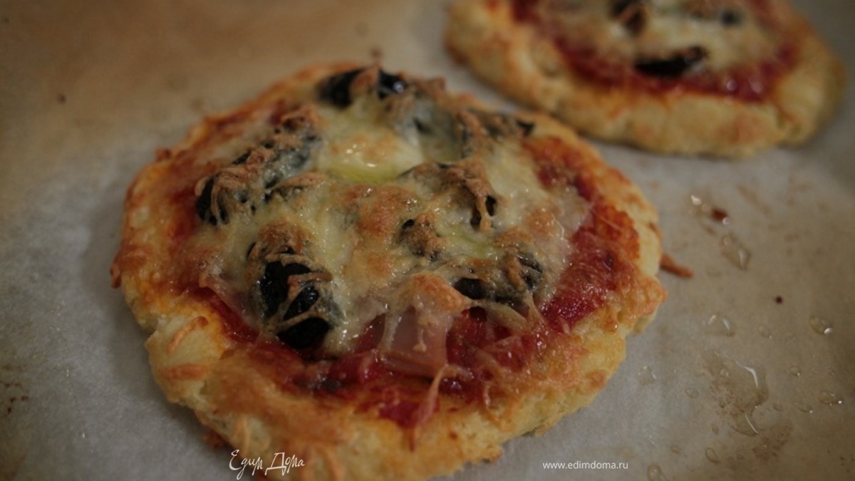 Мини-пиццы с копченой индейкой и оливками