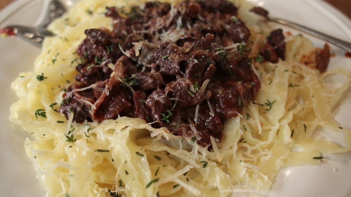 Мы только что закончили нашу трапезу с этой замечательной пастой.Вкус у мяса бесподобный,оно нежное, ароматное в меру пряное. Стоит потратить сутки на его маринование. Паста восхитительна.