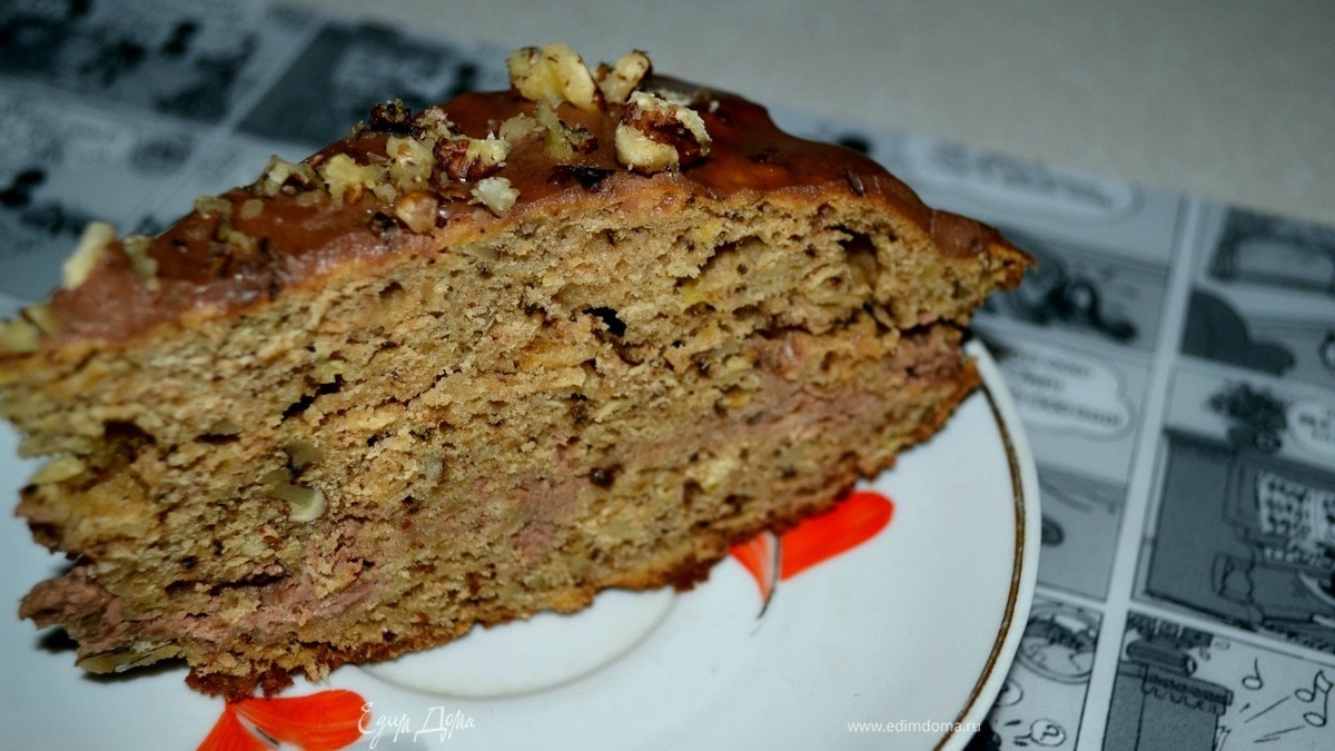Яблочно-ореховый торт с шоколадно-сметанным кремом
