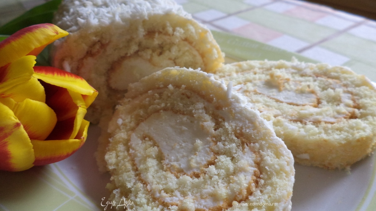 вкусный рулет с приятным акцентом кокоса😋😋😋
