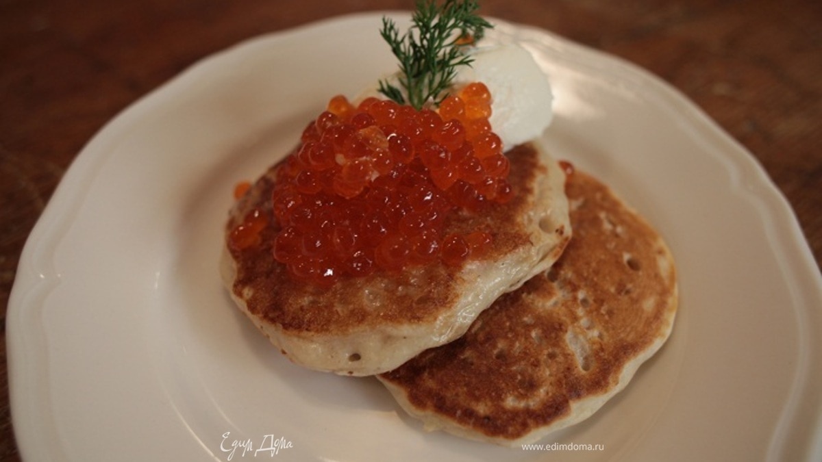 Овсяные оладушки с красной икрой