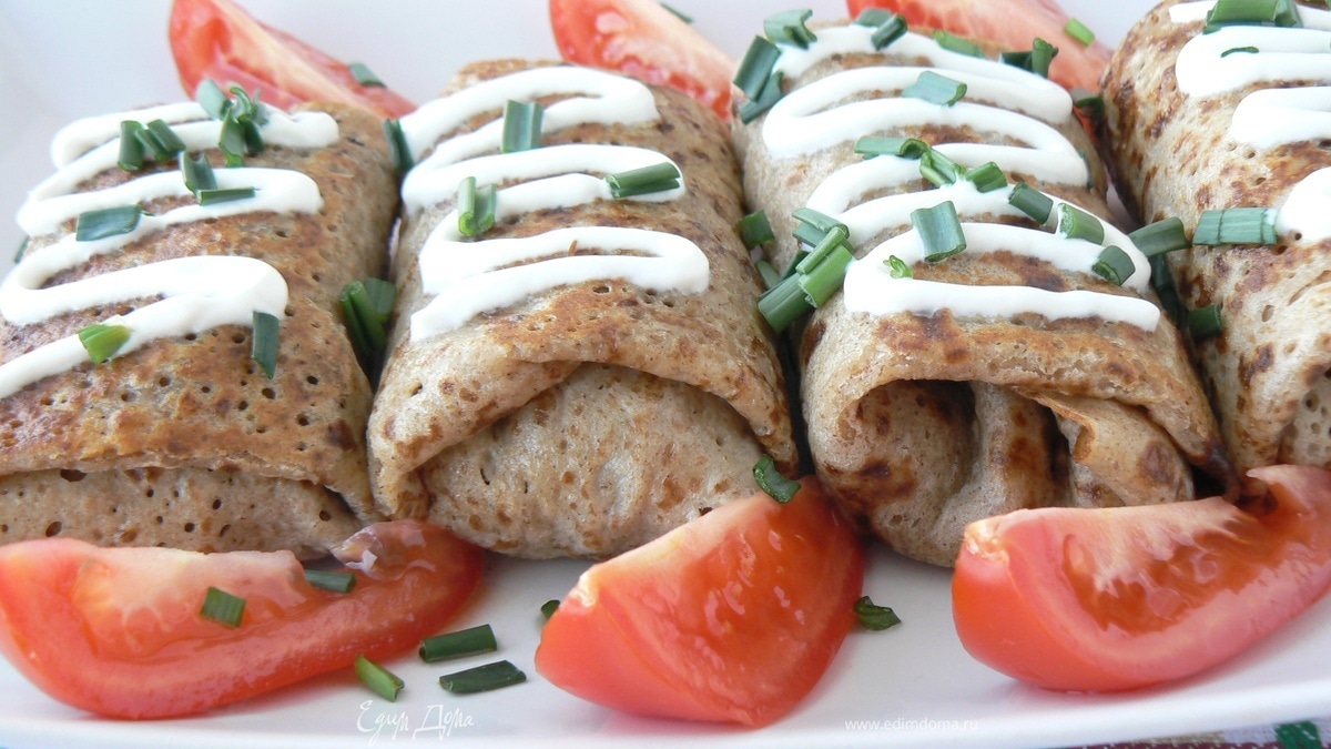 в данном рецепте у меня ржаные блины на закваске ссылка на рецепт но вы можете использовать любые несладкие блины