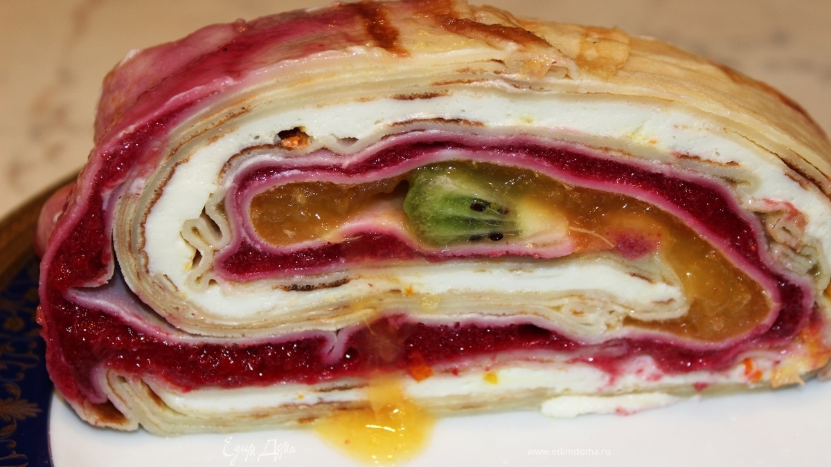 Яркий фруктово-блинный рулет с рикоттой "нежность"
