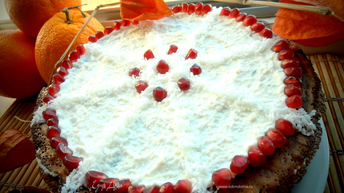 500 мл молока 1 ст.л. сахара 1 ч.л. ванил.сахара 2 ст.л. растит.масла 80 г шоколада 150 г муки 2 яйца 0,5 ч.л. соды треть ч.л. соли морской 1-2 ч.л. рома крем: 1200 г Рикотты 130-150 г сах. пудры 120 г сметаны или сливок гранат кокос - Шаг 1