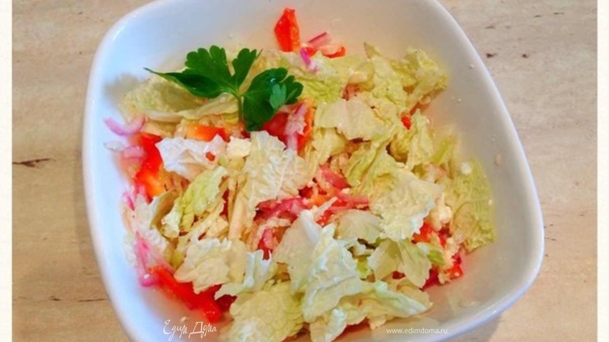 - Шаг 2Пекинскую капусту порвать руками на небольшие кусочки. Козий сыр покрошить. Смешать все ингредиенты. Приятного аппетита :)))