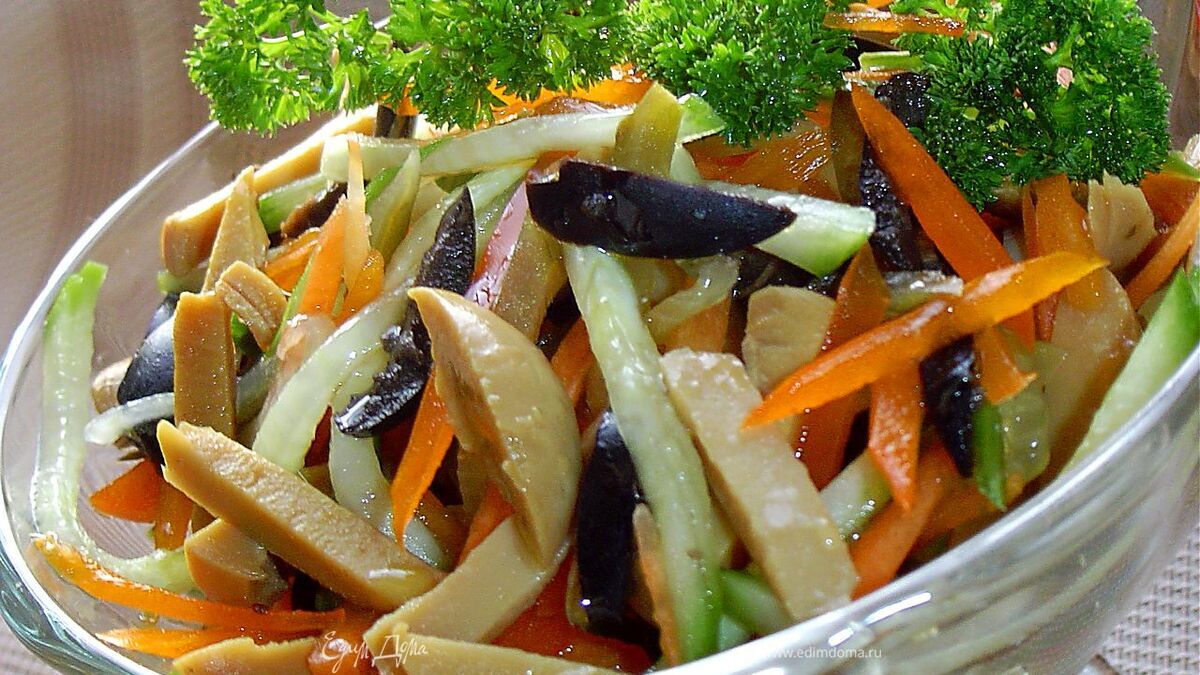 Грибы и оливки отцеживаем и нарезаем полосками. - Шаг 5