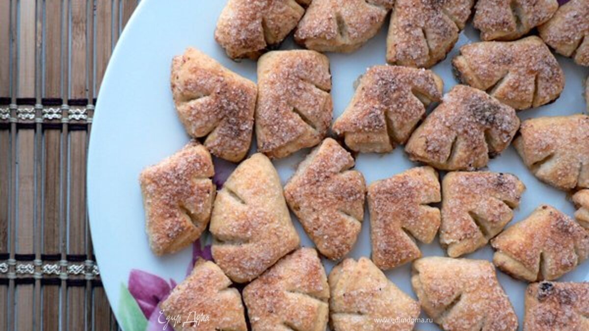 - Шаг 1Творог хорошо перемешать с размягченным маслом. Добиться однородной сливочно-творожной массы. Добавить муку и замесить тесто. Тесть разделить на несколько частей, каждую раскатать толщиной 0,5 см. Вырезать стаканом кружочки. Каждый кружочек обмакнуть в сахар, смешанный с корицей.Свернуть пополам сахаром внутрь. Еще раз макнуть в сахар, и еще раз свернуть. Полученный треугольничек еще раз финально макнуть в сахар. Выложить на противень, накрытый пергаментом. Сделать надрезы для "лапок" :) Выпекать при температуре 180-200 градусов, до готовности.