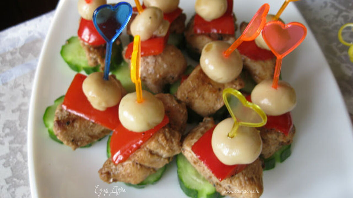 - Шаг 1перец режем на квадратики, огурцы кружочком. огурцы можно и свежие, маслины на любителя подойдут. отличная закуска!