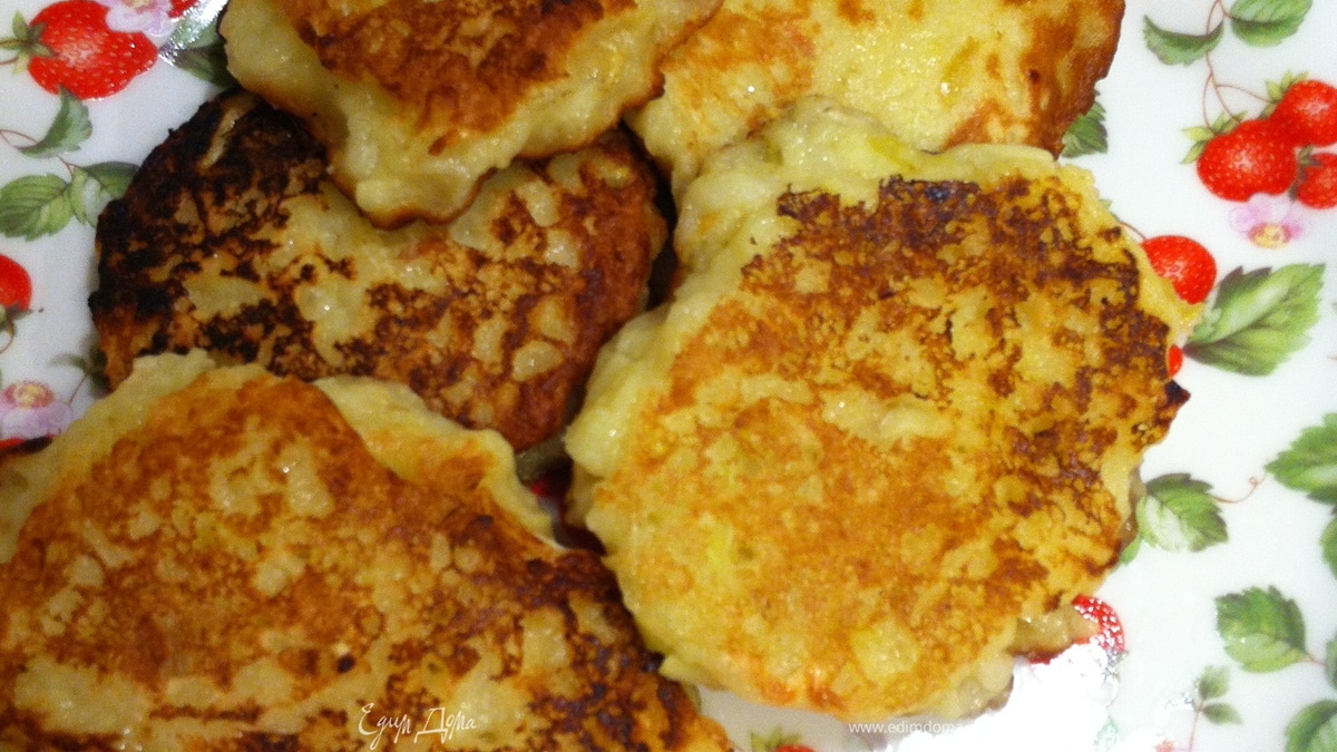 - ПодготовкаНатереть яблоки на терке, добавить муку, сахар, яйца и перемешать. Разогреть сковородку и на неё столовой ложкой выкладывать тесто - как сырники!