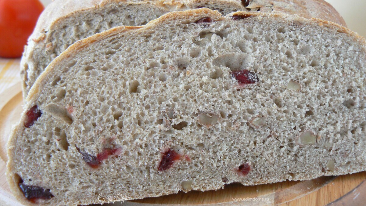 Добавить клюкву и грецкие орехи и месить руками пока они равномерно не распределятся в тесте.
