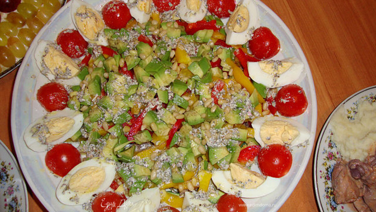 Этот салат я увидела пару лет назад в передаче "Званый ужин". Но записать не было возможности, а приготовить очень хотелось. Попыталась восстановить по памяти, и вот что получилось.