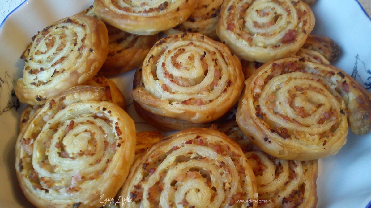 Собрались обедать, а хлеба не оказалось. Нашла в морозилке маленький кусочек слоеного теста, и из него вышли вот такие загорелые вкусняшки. Количество ингредиентов указываю для своего маленького кусочка теста. Замечательное дополнение к легкому супчику или бульону
