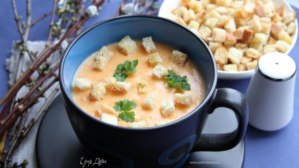 Разлейте по тарелкам, украсьте петрушкой. Подавайте суп горячим с гренками из белого хлеба.