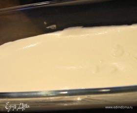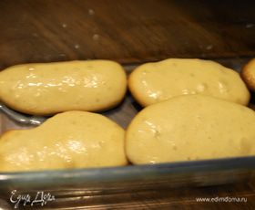 Савоярди обмакиваем быстренько (иначе они размокнут) в карамельный сироп и выкладываем в форму