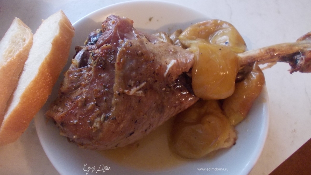 Поставить в духовку на час при температуре 180С. Затем вытащить, аккуратно раскрыть фольгу и добавить яблоки дольками. После возвращаем обратно ещё на час. Получается много вкусного сока.