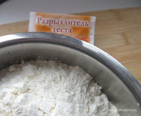 В муку добавить разрыхлитель теста.