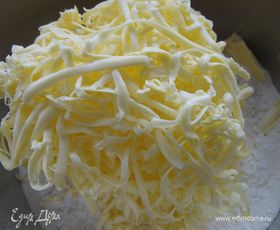 Добавить сахарный песок, натертое на крупной терке сливочное масло.
