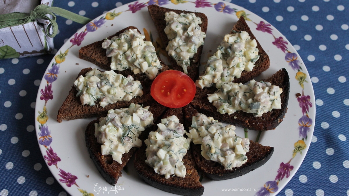 - Шаг 1Отварные яйца, огурец, укроп мелко рубим. Всё подмешиваем к сельди. Заправляем майонезом. Либо смешать сметану с горчицей. Я смешивала сметану и майонез.