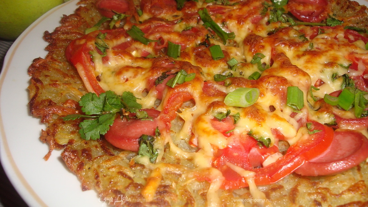 - ПодготовкаЧистим картофель, после трем на крупной терке, солим, перчим по вкусу и хорошеничко отжимаем от лишней влаги. Чтобы наши пиццы были хрустящими.