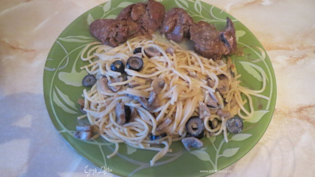 Спагетти с грибами и маслинами