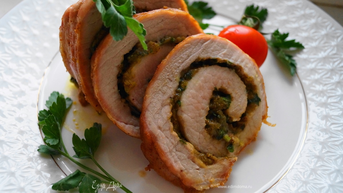 Дорогие мои, хочу вас всех угостить вот таким рулетом с фисташками. Он очень нежный, сочный и вкусный. Я даже не ожидала, что фисташки так хорошо гармонируют со свининой. Угощайтесь.