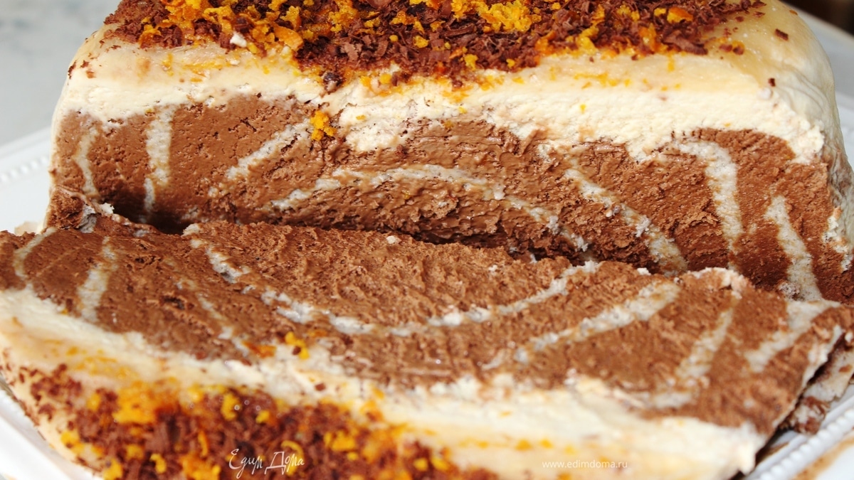 Украсить по своему усмотрению (я присыпала оставшейся цедрой и тертым шоколадом). На праздничном столе такой высокий мраморный торт-мороженое смотрится очень эффектно... - Шаг 19