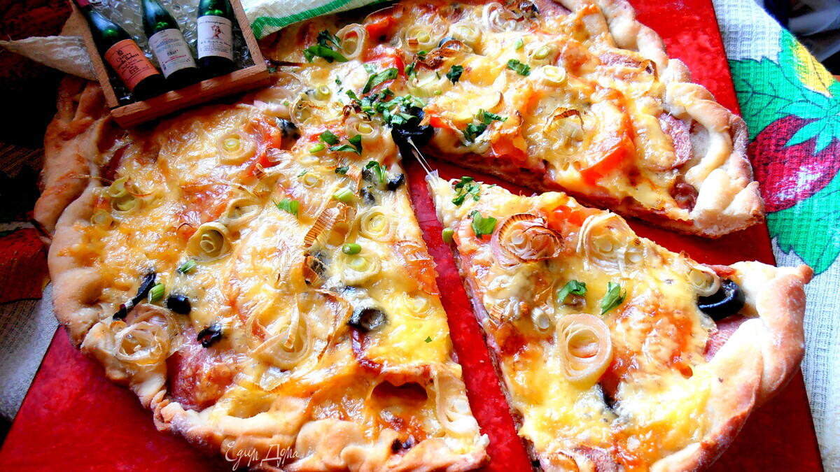 Для любителей мягкой, нежной пиццы, где тянется сырррр...ммм)))) Угощайтесь!!!