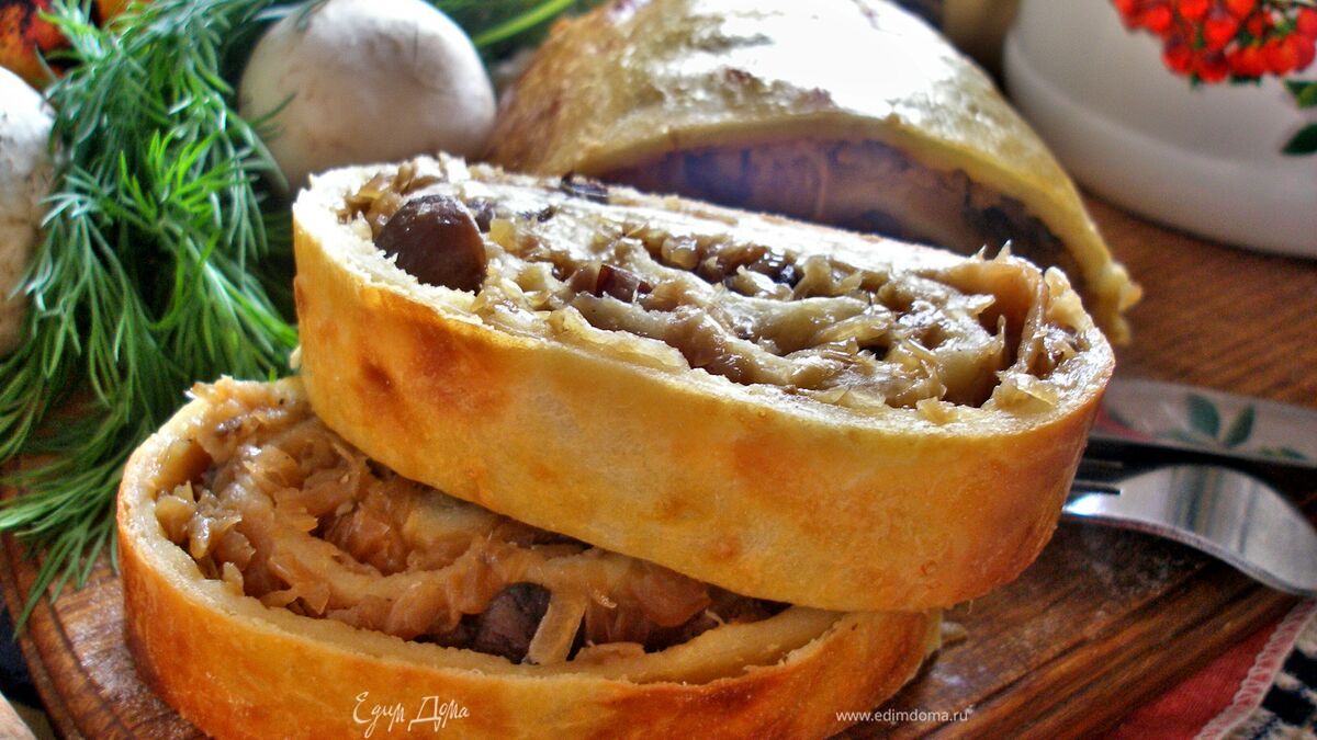 Картофельный рулет с капустой и грибами