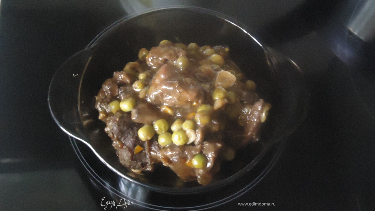 - Шаг 4потом добавляем зеленый горошек в мультиварку