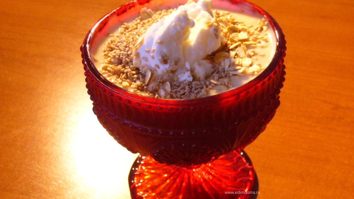 - Шаг 4Посыпаем нежный йогуртово-творожный десерт кунжутным семенем и остатками злаков.