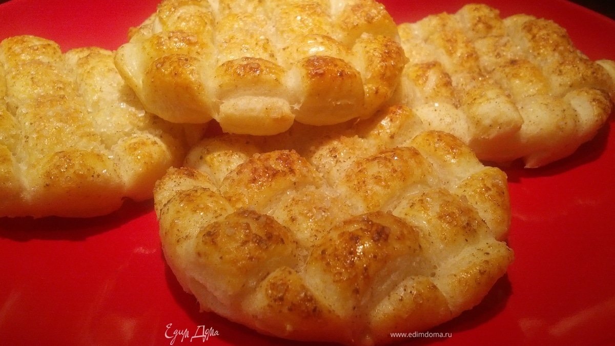 готовый "коврик" смазываем желком и молоком, присыпаем сахаром с натуральной ванилью (или саханой пудрой с ванилью, также можно присыпать корицей). Вырезаем из "коврика" при помощи обычной кружки кружочки. - Шаг 2
