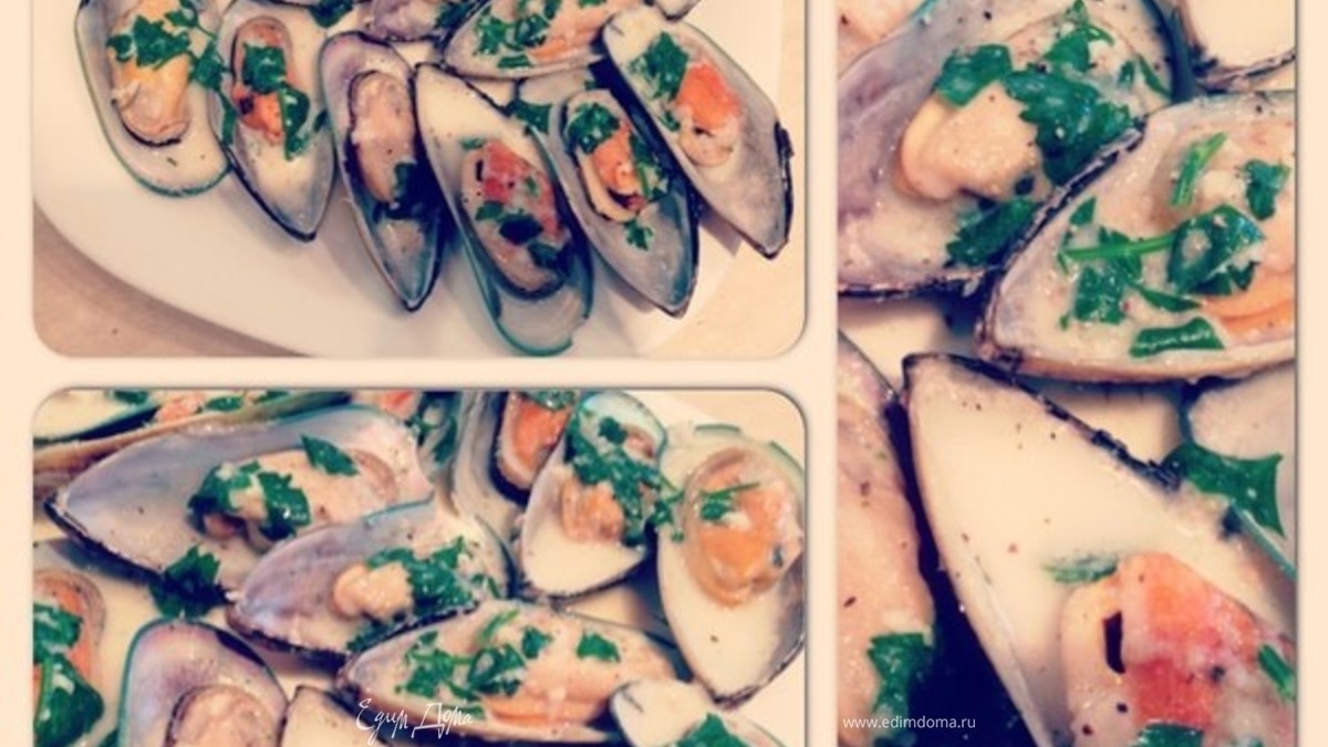 - Шаг 5Полить готовым соусом мидии. Приятного аппетита:)