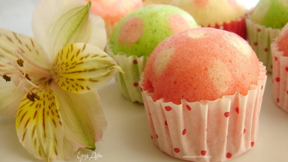 Тестом из кондитерских мешков нанести на кексы "горох" контрастного цвета. Для этого кондитерский мешок на 2-3 мм следует окунуть в тесто кекса и аккуратно выдавить каплю, постепенно вынимая мешок из теста. - Шаг 3