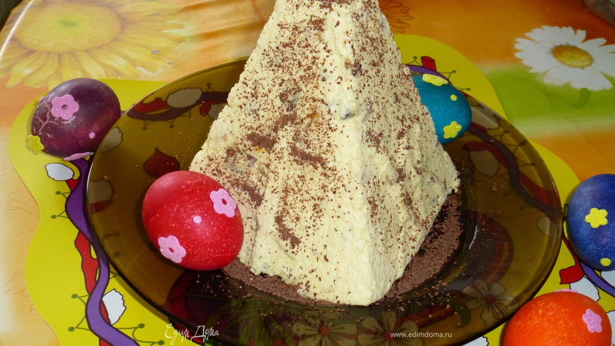 Готовую пасху переворачиваем на блюдо, снимаем марлю и украшаем. Приятного аппетита! Христос Воскрес!