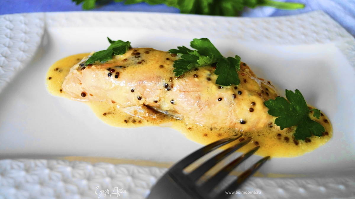 Лосось, запеченный в сладко-горчичном соусе