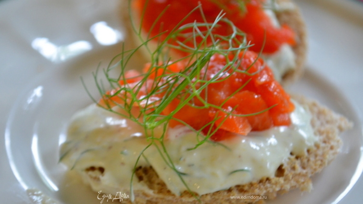Канапе с копченой семгой и с хреновым кремом