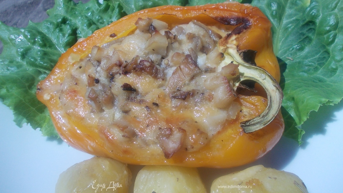 Лодочки из перца, фаршированные сыром и грибами