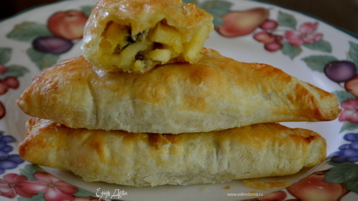 Закроем тестом, чтоб получился красивый треугольник. Используем вилку, прижимаем кончики теста. - Шаг 6