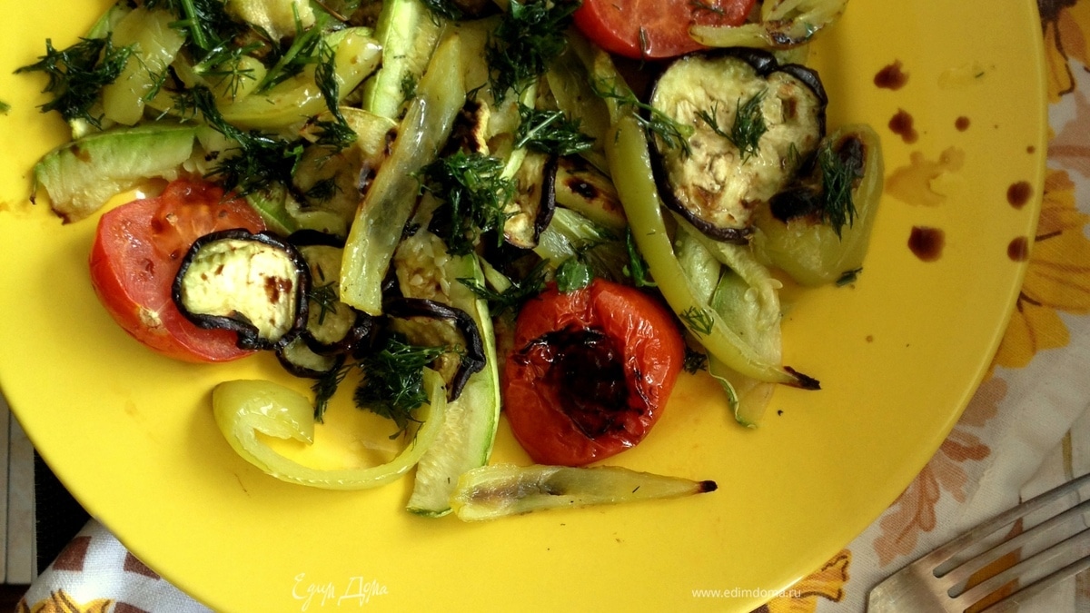 - Шаг 2Все овощи выложить на смазанным олив. маслом противень и запекать 25 мин. при 180 гр.