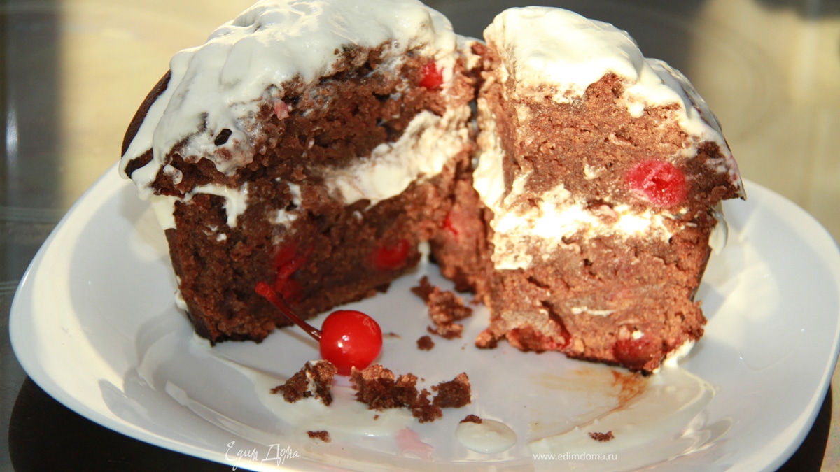 Середину и поверхность я покрыла взбитыми сливками и украсила вишенкой. Но как украшать - ваша фантазия и возможности! Можете испечь в виде пирога и не украшать вовсе! - Шаг 14