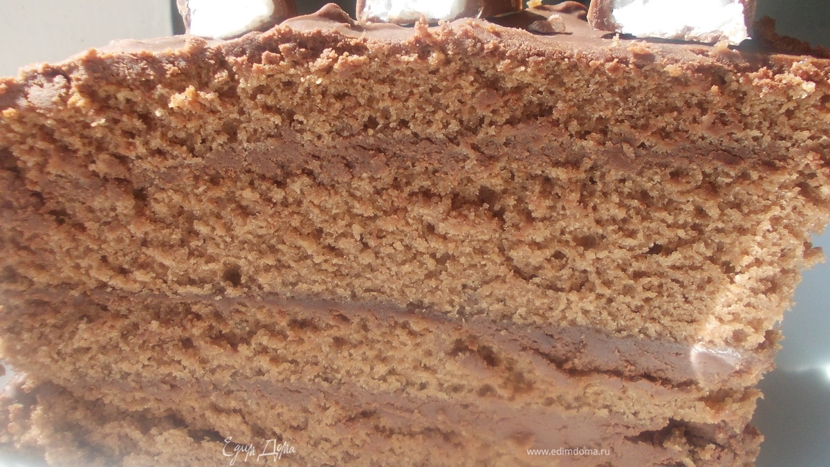 Смазываем коржи кремом и украшаем по желанию. Торт получается очень мягкий и не сухой,по этому не нуждается в дополнительной пропитке.