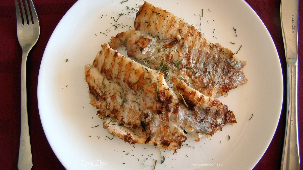 Смазываемым маслом хорошо нагретую сковороду-гриль, обжариваем окуня по 3-4 минутки с каждой стороны. Приятного аппетита!