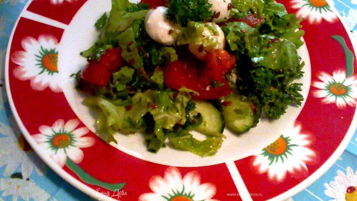 - ПодготовкаВсе ингредиенты нарезаем по вашему усмотрению.Выкладываем в салатницу и заправляем маслом,лимоном и специями.Сверху посыпаем семенами льна. Приятного аппетита и хорошего ВЕСЕННЕГО настроения!!!