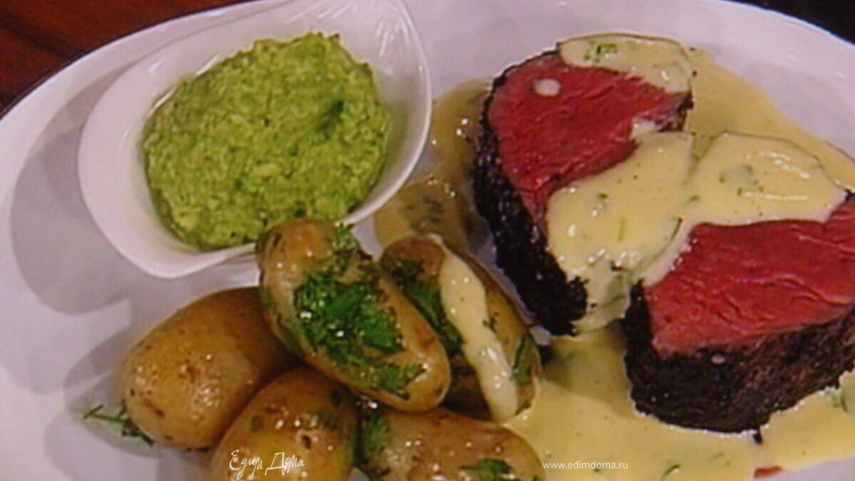 Филе говядины со спаржевым песто под соусом "Béarnaise"