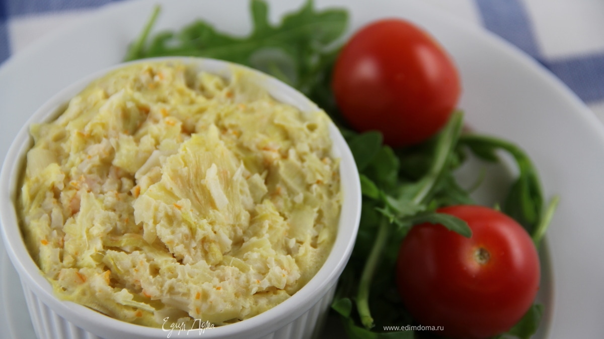 Лук-порей режем тонкими кружочками. В оригинале его предлагают отварить в пароварке 10 минут, я его решила обжарить на небольшом количестве оливкового масла до мягкости. - Шаг 1